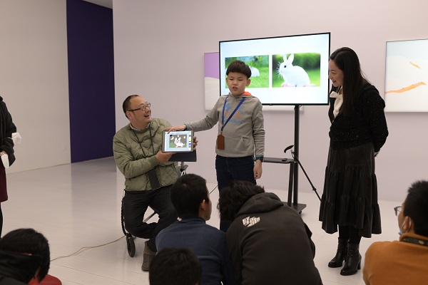 新春的第一堂課,劉毅老師沿用了他手機繪畫的創作形式,選擇“兔”為主題,與孩子們一起在屏幕上用手指描繪。每只手聯系著每個孩子不同的眼光和思考,豐富獨特的繪畫語言和觀察力讓劉毅老師一邊與他們討論修改,一邊嘖嘖稱贊。這堂課出于一份愛心,更出于一份對藝術能量的信任,正如劉毅老師所言:“藝術的真善美可以把我們的心帶回最柔軟的本源之地?!?/p>