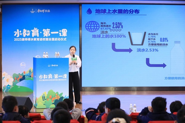 2023年3月21日,以“知水·愛水·節水”為主題的“水教育第一課· 2023康師傅水教育進校園全國啟動儀式”在上海市金匯實驗學校召開,中國飲料工業協會副理事長兼秘書長程毅,上海市金匯實驗學校校長尹紀平、課程中心主任俞芳、學生中心主任曾偉、小學學生管理部主任周燕平,康師傅飲品投資(中國)有限公司經營本部主管車軍峰,康師傅控股有限公司公關部主管李經出席活動。