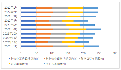 2022.01-2023.01我國制造業的各項指數變化圖(國家統計局數據)