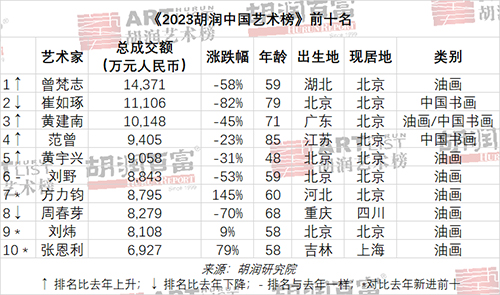 2023胡潤中國藝術榜發布 油畫家占比反超國畫家