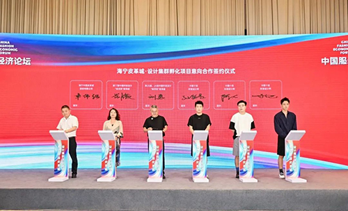 與此同時,海寧中國皮革城?設計集群孵化項目意向合作簽約儀式同期舉行。海寧中國皮革城始終重視原創設計的培育和孵化,此次簽約的五位優秀設計師也將與皮革城在海寧中國皮革城?設計產業集群、潮品薈FDC、品牌風尚中心、潮來產業服務平臺等多個項目里產生合作,用設計力量助力海寧當地時尚產業發展。其中,潮品薈FDC是海寧中國皮革城傾力打造的全維度時尚產業商辦中心,總建筑面積約12.5萬平方米,融合城市人文、潮流餐飲、文化娛樂等多元配套產業,將為品牌企業、優秀設計公司提供美好的服務體驗。
