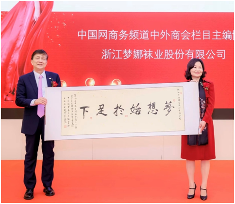浙江夢娜襪業股份有限公司是本次聯歡會協辦單位之一,總經理金秀芳做主題分享。夢娜襪業1994年在浙江義烏始創,始終致力于女性的優雅、魅力、健康,嚴控質量,開拓市場,一步步將產品送到全球數十個國家和地區。中國網商務頻道中外商會欄目主編王強,現場贈以書法作品《夢想始于足下》,一語雙關,勉勵夢娜襪業行穩致遠。王強還表示,“上海玫瑰”來自五湖四海,盛開在申城,具智力、魅力、華麗之美,投身各項事業,助推區域發展,大家一起講好中國故事、講好中國企業家故事。
