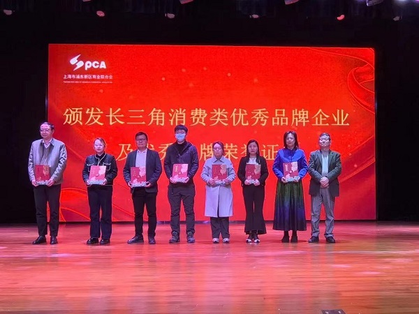 浦東商聯會蔣智敏會長,向獲得長三角消費類優秀品牌的企業及優秀品牌,頒發了榮譽證書。