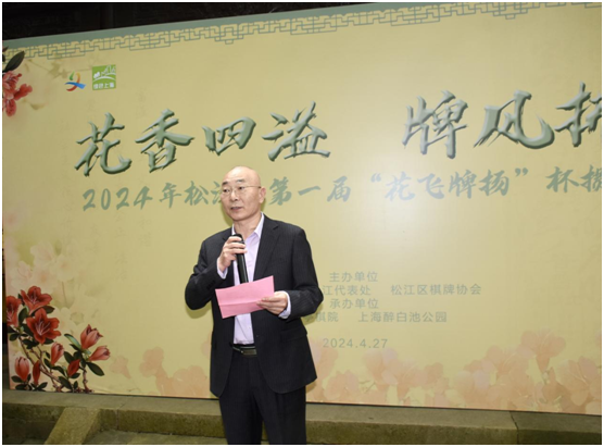 上海市松江區棋牌協會秘書長吳剛、上海醉白池公園主任徐廣強先后致辭,介紹醉白池公園以體育運動為媒,讓各省市在上海的企業,沉浸于江南園林,共享自然之美。