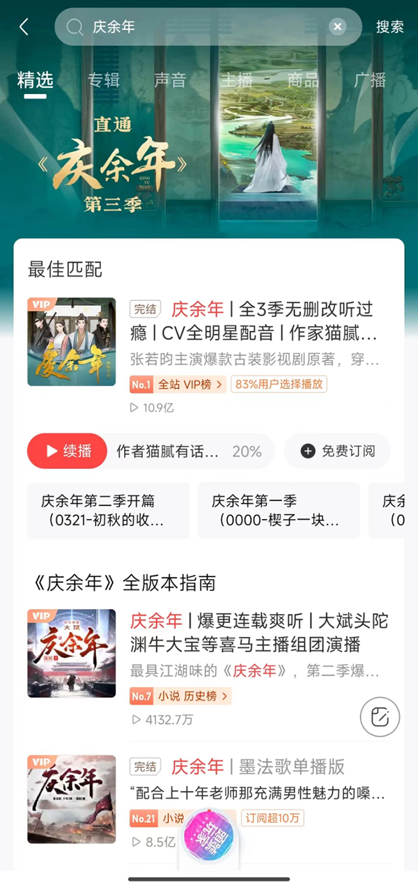 在有聲世界中研習慶學 《慶余年2》與平臺好內容夢幻聯動