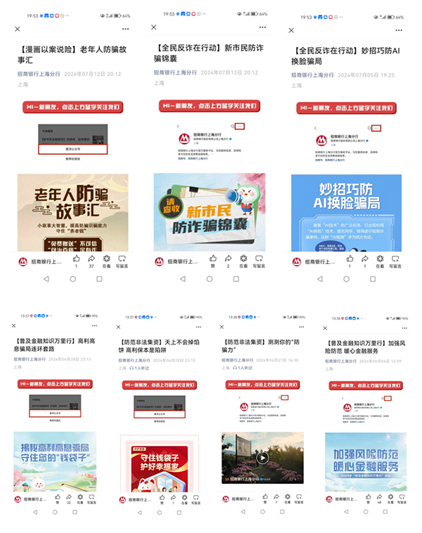 在網絡宣傳方面,分行也充分發揮了自媒體平臺的優勢,通過微信公眾號、視頻號等渠道,開設了多個反詐專欄,如“全民反詐在行動”和“科普”等。這些專欄不僅發布了大量原創的反詐宣傳作品,還積極轉發總行的優秀作品,總閱讀量近5000人次。特別是6月1日至7月15日期間,分行發布了7篇宣傳作品,閱讀量超過1000人次,有效擴大了反詐知識的傳播范圍和影響力。這些作品采用生動的案例、簡潔明了的語言、直觀的圖文以及趣味性的短視頻等多種形式,讓群眾在輕松愉悅的氛圍中就能學習到實用的反詐知識,從而提升自己的防范能力。