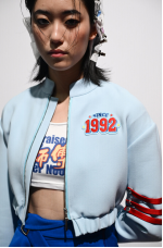 “能量補給站”系列從冰紅茶“痛快能量”的品牌精神中汲取靈感,將標志性的檸檬黃與戶外機能美學相結合,運用立體剪裁與高性能再生面料,視覺化傳遞出補能解渴的暢快感?!扒逍潞粑毕盗袆t呼應茉莉茶的清香淡雅,以月白、淺碧等柔和色調與輕盈層疊設計,細節上采用茉莉花的元素、茉莉衍生出的印花等柔美元素,呼應茉莉的優雅營造如清風拂面般的輕戶外穿著體驗